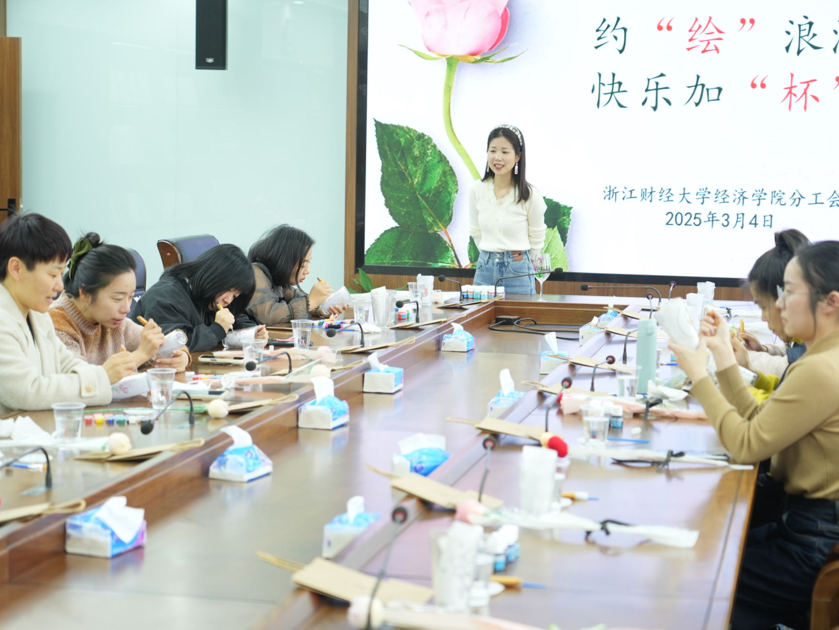 为迎接2025年国际妇女节的到来,丰富女教职工的业余生活,提升艺术修养,3月4日下午1:40至4:00,雷速体育app 分工会在学术中心308室举办了主题为“约‘绘’浪漫,快乐加‘杯’”的手绘玻璃杯活动。雷速体育app 分工会女教职工积极参与,共同度过了一个充满创意与欢乐的下午。