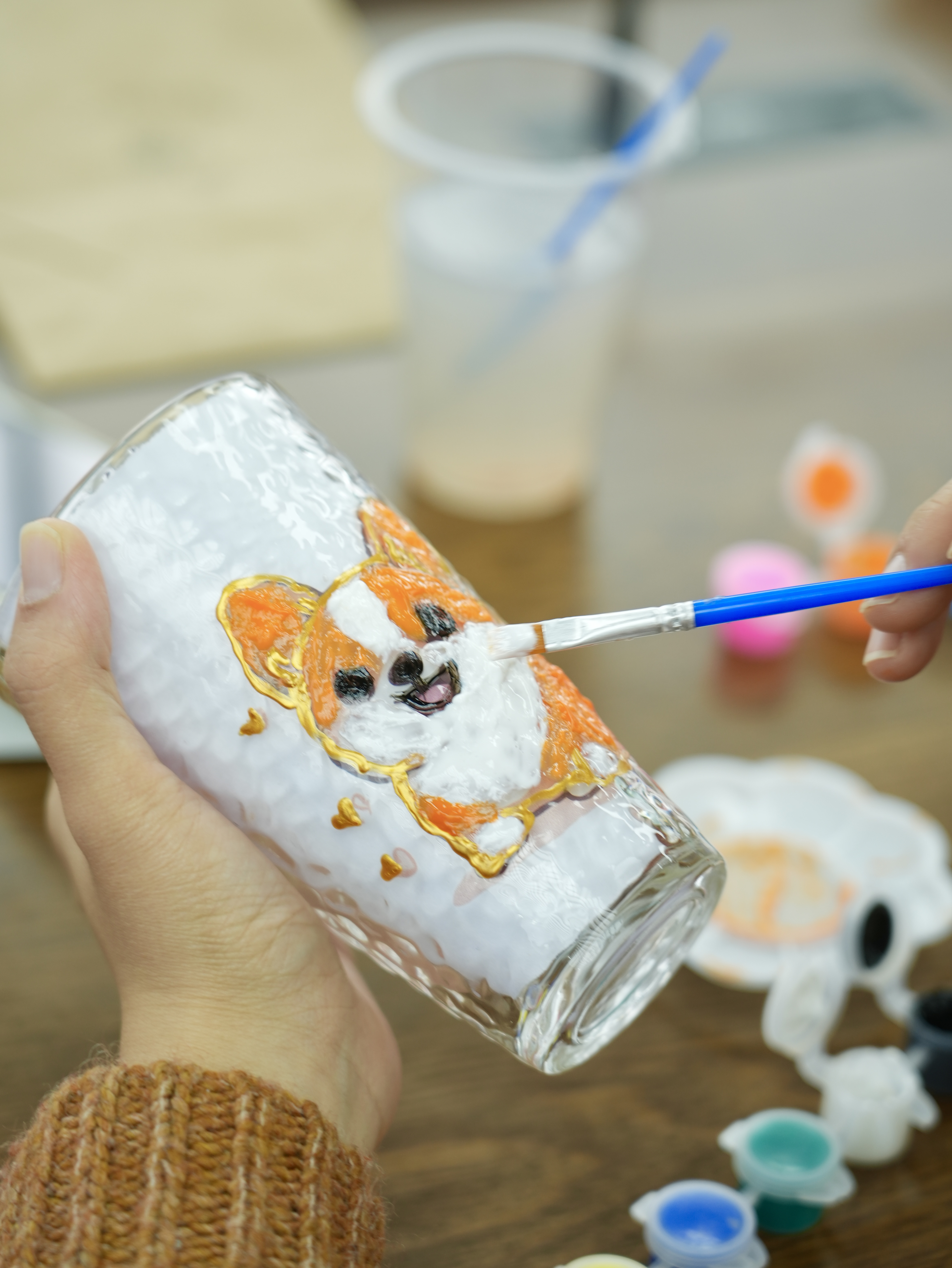 活动特别邀请了专业的手工老师进行现场指导。活动伊始,工作人员为每位老师分发了玻璃杯、颜料、水彩笔和勾线笔等绘画工具,并在杯内贴上了各式图案供大家选择。老师们可以根据个人喜好自由选择图案,将其描绘在杯壁上。