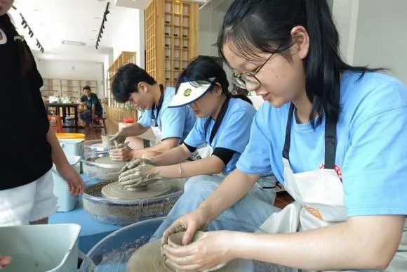 往昔千年,婺窑兴衰,抚古起今,薪火再续。实践团队走访了金华市雅畈镇汉灶村的中国婺州窑博物馆与武义婺州窑陶瓷研究所,采访了国家级非遗传承人陈新华和他的弟子童心、邵文礼,并体验了婺州窑陶瓷器的制作过程。金华清廉文化建设以来,婺州窑制作团队创作了一系列与“清廉文化”有关的作品,为振兴婺州窑注入了新的活力,也为婺州清廉文化的建设灌注了养分。一块粘土,融合手艺和匠心步步生巧,形成形形色色的瓷之生命,清廉文化也在言传和身教中代代承继。