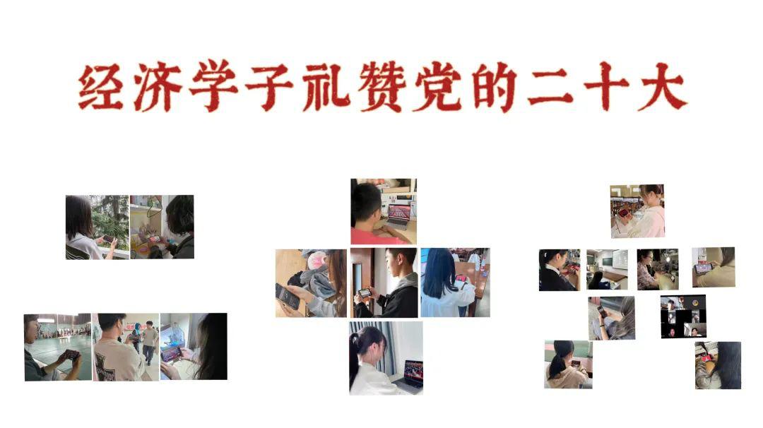 重要的时间节点,关键的奋斗坐标。党的二十大事关党和国家事业继往开来,事关中华民族伟大复兴历史使命。国家统一、民族复兴的历史车轮滚滚向前,十年弹指一挥间,新时代中国的每一瞬间都在创造奇迹、书写历史。在党中央的领导下,在习近平新时代中国特色社会主义思想的指导下,身为肩负使命的经院人应以青春之名在奋斗的路上步履不停。让青春在全面建设社会主义现代化国家的新征程中绽放绚丽之花,让“全面推进中华民族伟大复兴”的号角再次嘹亮,让神州大地奏响“强国复兴有我”的激扬乐章!