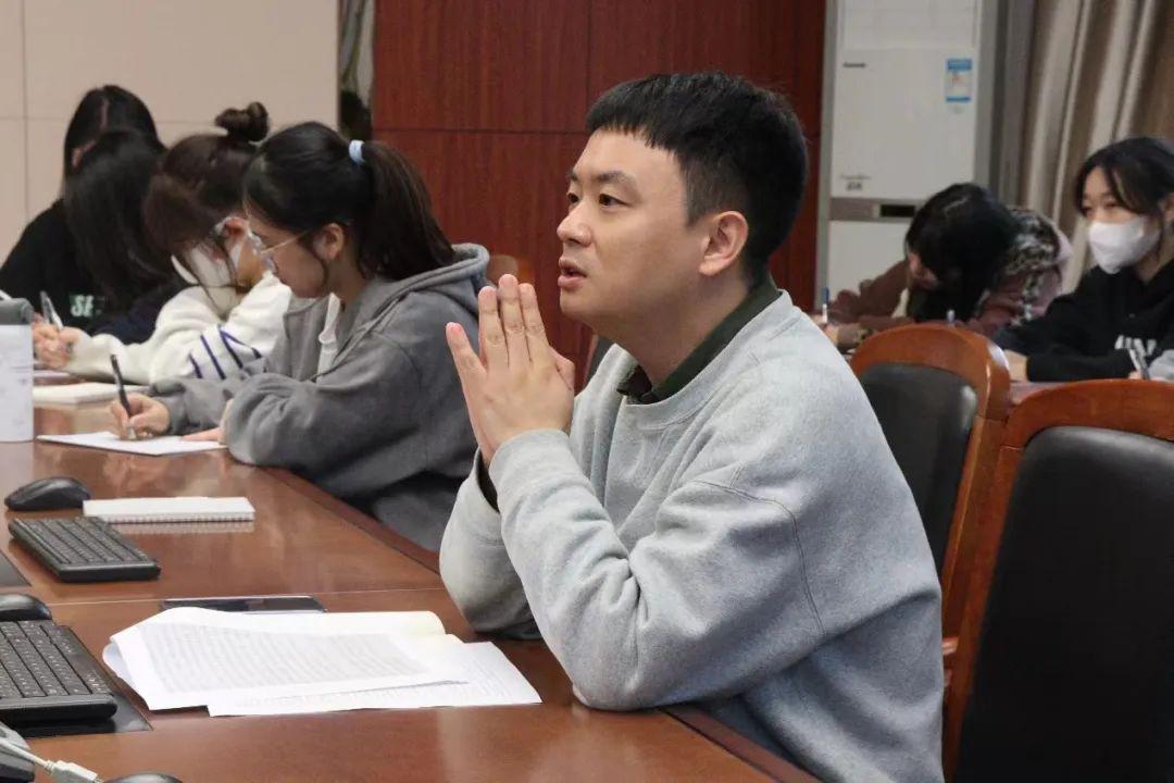 崔泰铭老师首先就学生负责人的职责所在与大家展开讨论,他强调学生负责人应当强化工作责任心和社会责任感,平衡好学习与工作的时间,让青春在新征程上绽放绚烂之花。