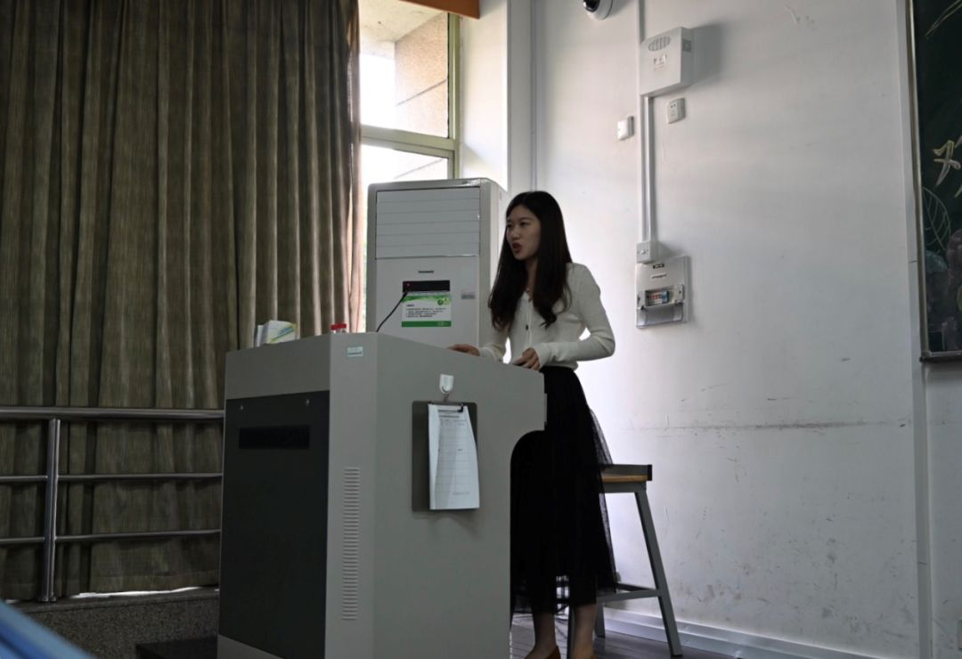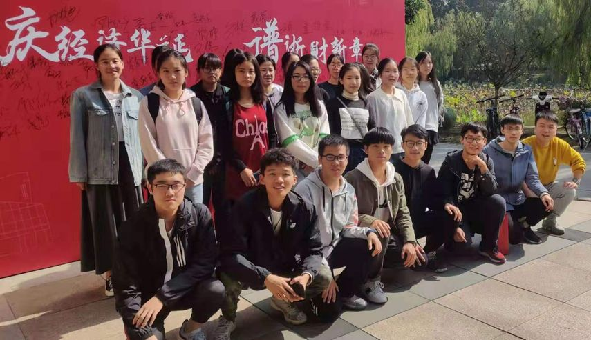 陈旖校友与19经贸5班学生合影