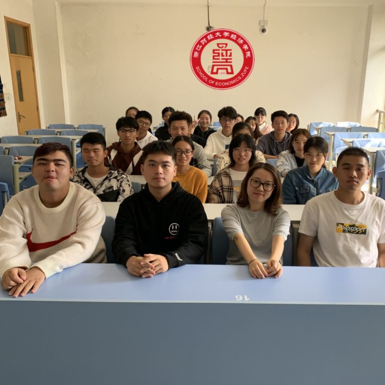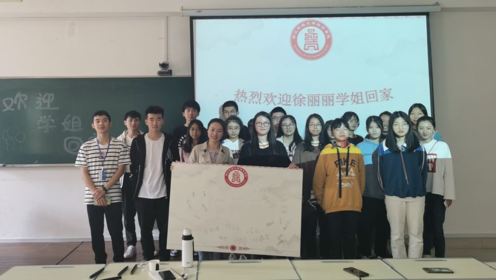 徐丽丽校友与19经贸8班学生合影