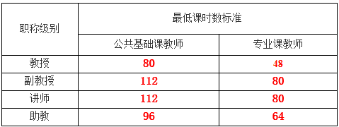 1、注意教学业绩考核要求,确保教授和副教授在一学年中为本科生讲授一门及以上的课程(不含讲座),并且教授在一学年中为本科生授课的课堂教学时数达到48(含)以上,其他教师课时要求见下表,在下半年排课时尤其需要注意。