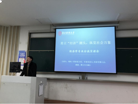 2019级大类分流动员会。本次动员会邀请了经济系系主任(专业负责人)邱风教授、国际经济与贸易系主任(专业负责人)吴宏教授与国民经济管理系主任(专业负责人)唐兆希副教授分别给同学们介绍三个专业,为大类分流提供建议和指导。