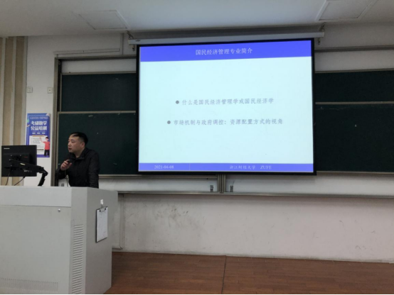 接着,唐兆希老师给学生普及了国民经济管理专业渊源,介绍了专业的培养目标,办学特色以及师资情况和课程设置,方便学生们更好地认识本专业的特点。唐老师强调学生在大学期间最重要的是培养自身的学习能力,良好的学习习惯可以让人受益终身。
