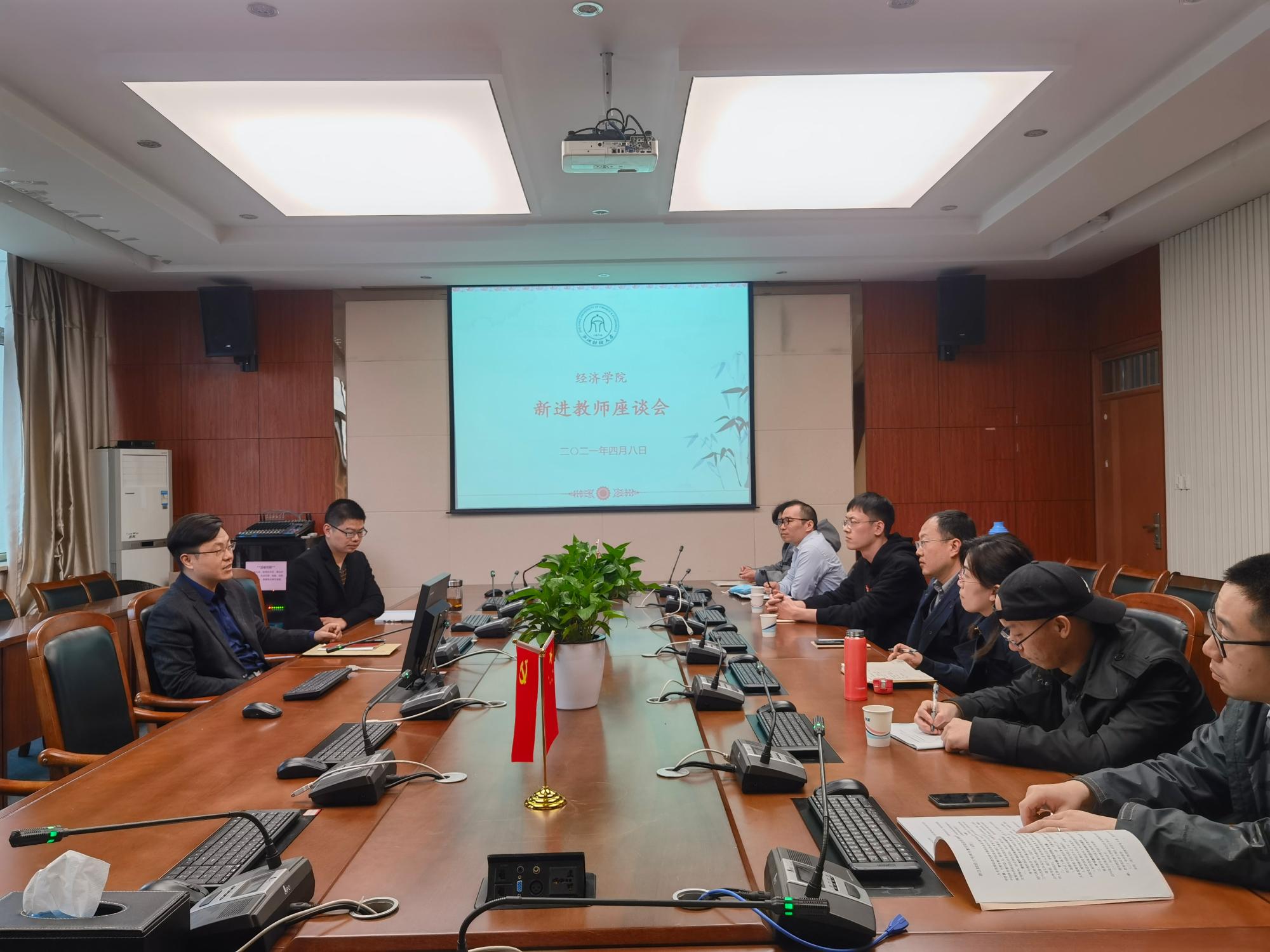 于4月8日下午在210会议室召开青年教师座谈会。院长王正新、院长助理邓晓军和近期入职的青年教师参加了本次座谈会。